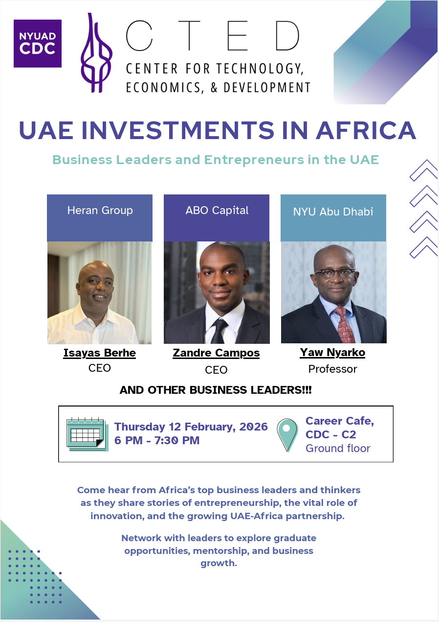 The forum aims to bring together leading business figures, investors, policymakers, and intellectuals to discuss concrete opportunities for collaboration between the UAE (and the broader Gulf region) and Africa. Speakers will include senior business leaders, investors, and scholars with expertise in investment dynamics, market entry, and cross-regional partnerships, with a focus on how opportunities can be identified, structured, and scaled. The conference will also provide a platform for emerging voices—particularly African students and early-career professionals in the region, including those from NYU Abu Dhabi—to engage with experts and gain practical insights into careers and ventures at the intersection of Africa and the Gulf.